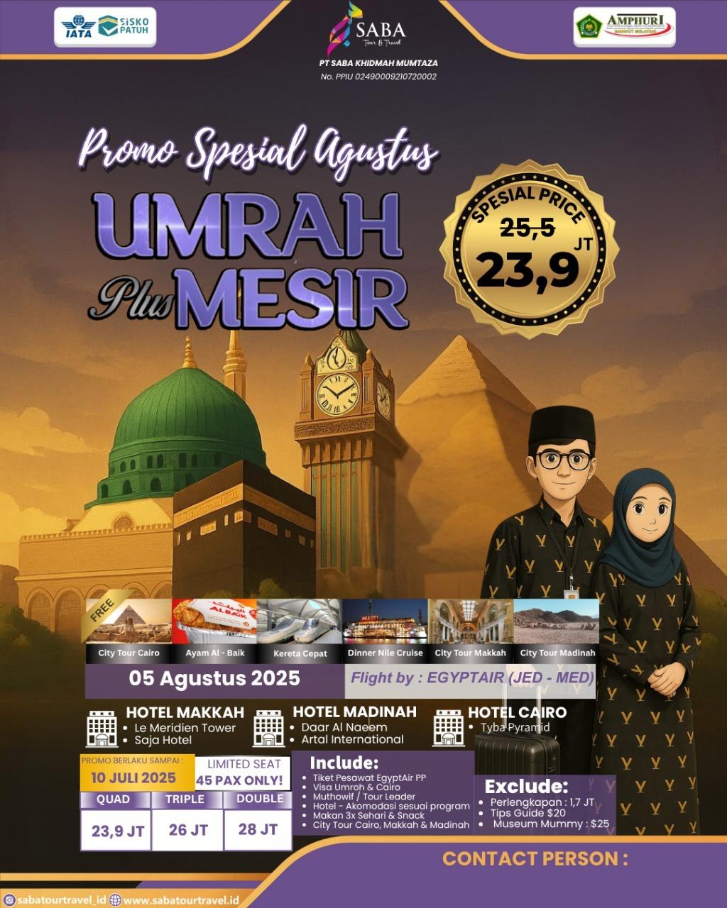 Didukung oleh tim berpengalaman dan pembimbing ibadah yang kompeten, kami memastikan setiap langkah perjalanan dari keberangkatan hingga kembali ke tanah air dipenuhi dengan bimbingan, keramahan, dan perhatian. Kami percaya bahwa perjalanan ibadah bukan sekadar perjalanan fisik, melainkan juga perjalanan menata hati yang mendalam.