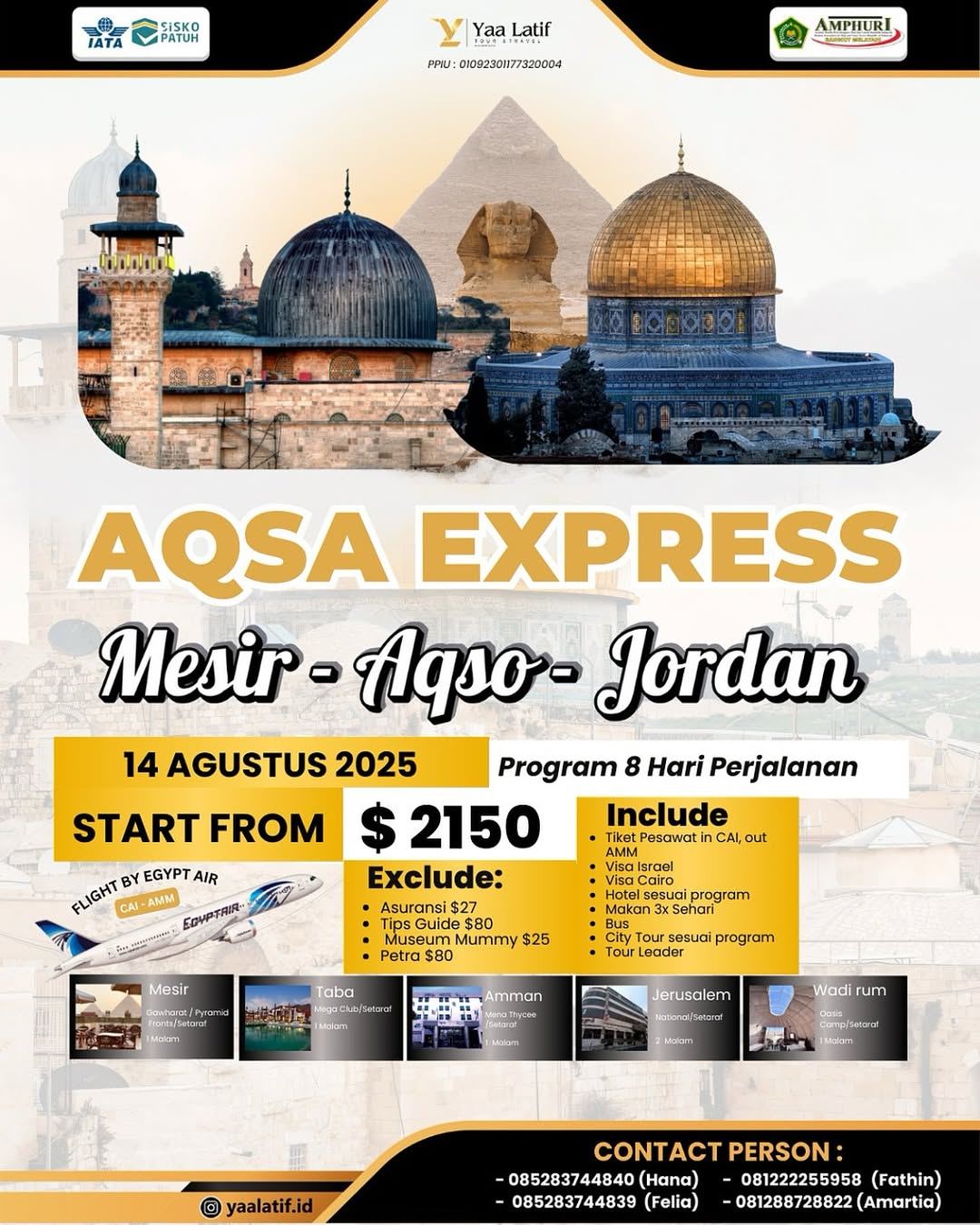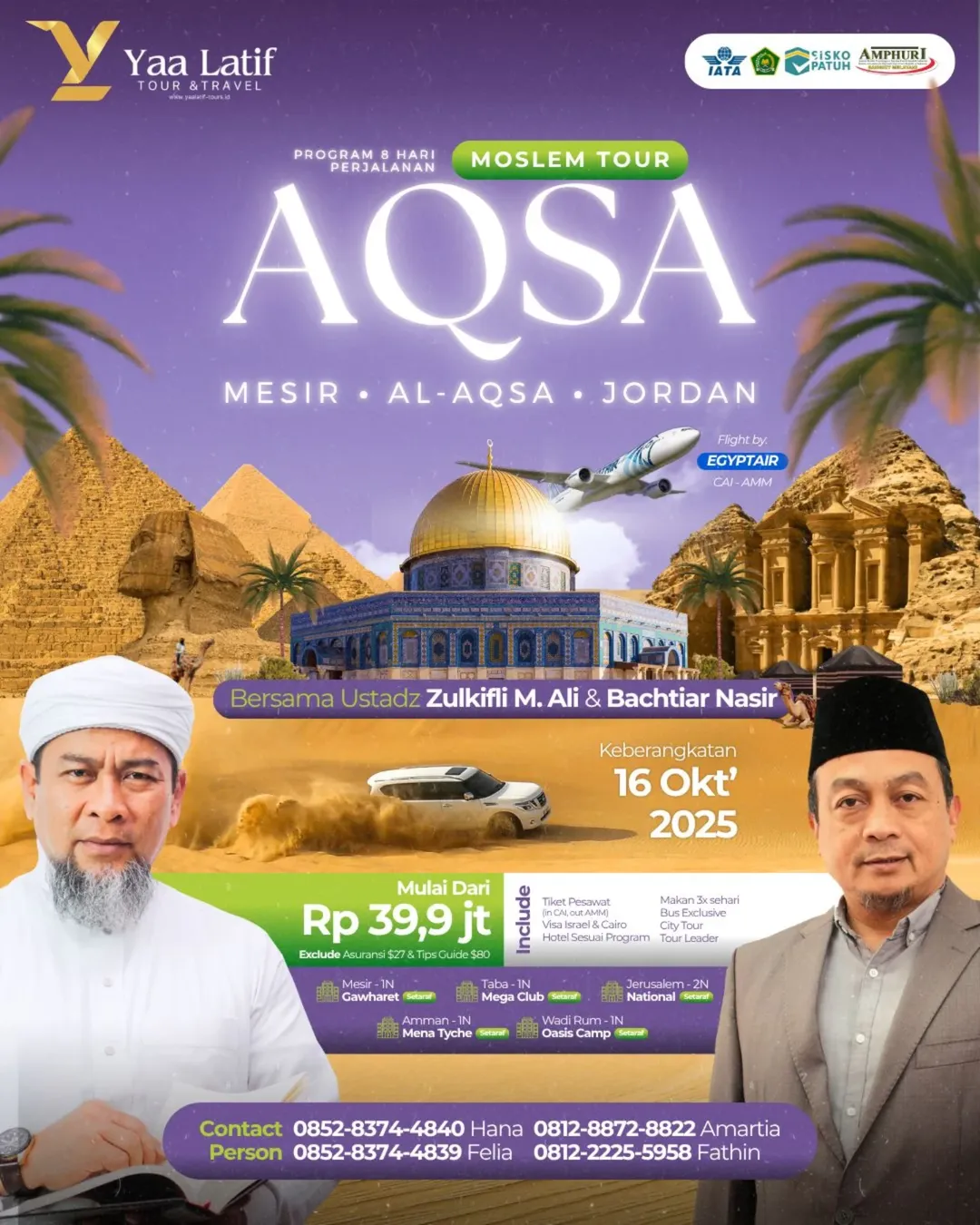 Sejak awal berdirinya, Yaa Latif Tour & Travel hadir sebagai sahabat perjalanan spiritual umat Muslim Indonesia. Dengan komitmen pada pelayanan yang amanah dan profesional, kami menawarkan berbagai paket umrah, haji dan wisata halal yang dirancang untuk memberikan kenyamanan, ketenangan, dan pengalaman ibadah yang khusyuk.